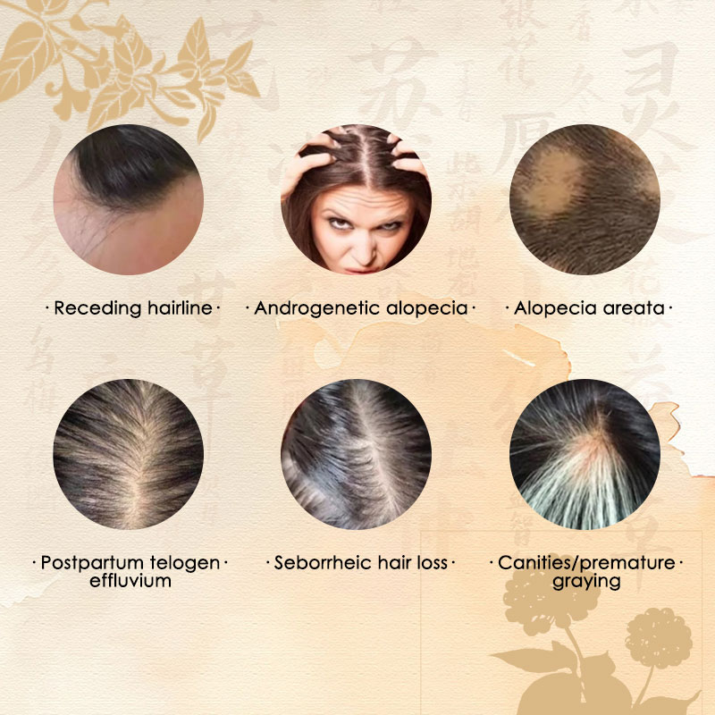 Receding hairline,Androgenetic alopecia,Alopecia areata,Postpartum telogen effluvium,Seborrheic hair loss,Canities/premature graying